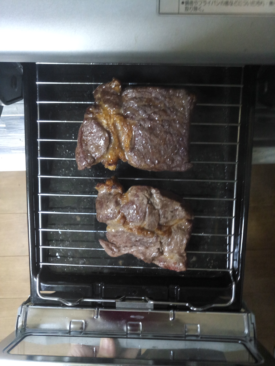 ガスレンジの魚焼きグリルでステーキが焼けるという情報を!